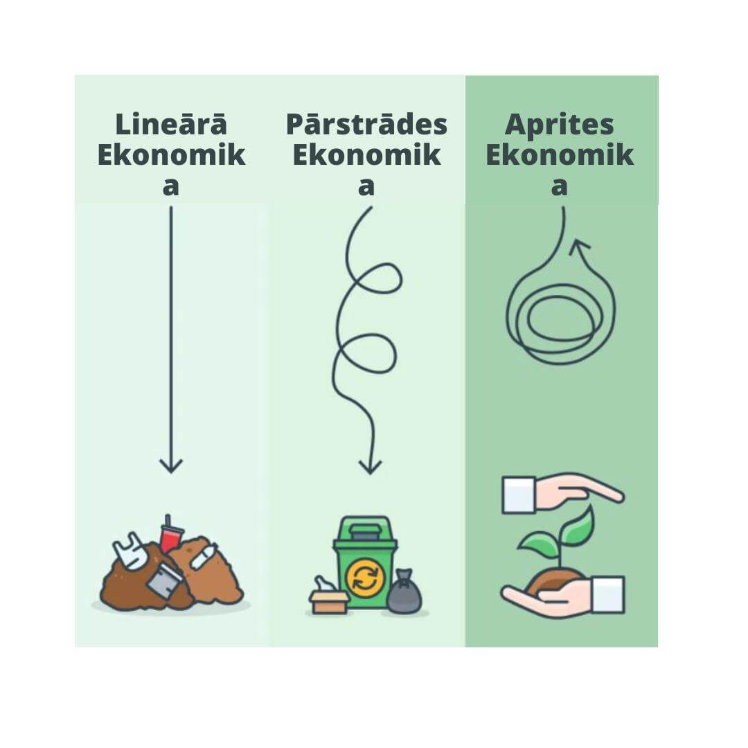 Kopš industriālās “revolūcijas”, produktu masu ražošana ir radījusi lielu ietekmi uz vidi un cilvēkiem. Ekonomika sāka balstīties uz lineāru modeli, kas raksturojas ar “paņem-izveido-nodod” pieeju: dabas resursu ieguve un dažādu preču ražošana, no kurām lielākā daļa beidzot pārvēršas par atkritumiem.